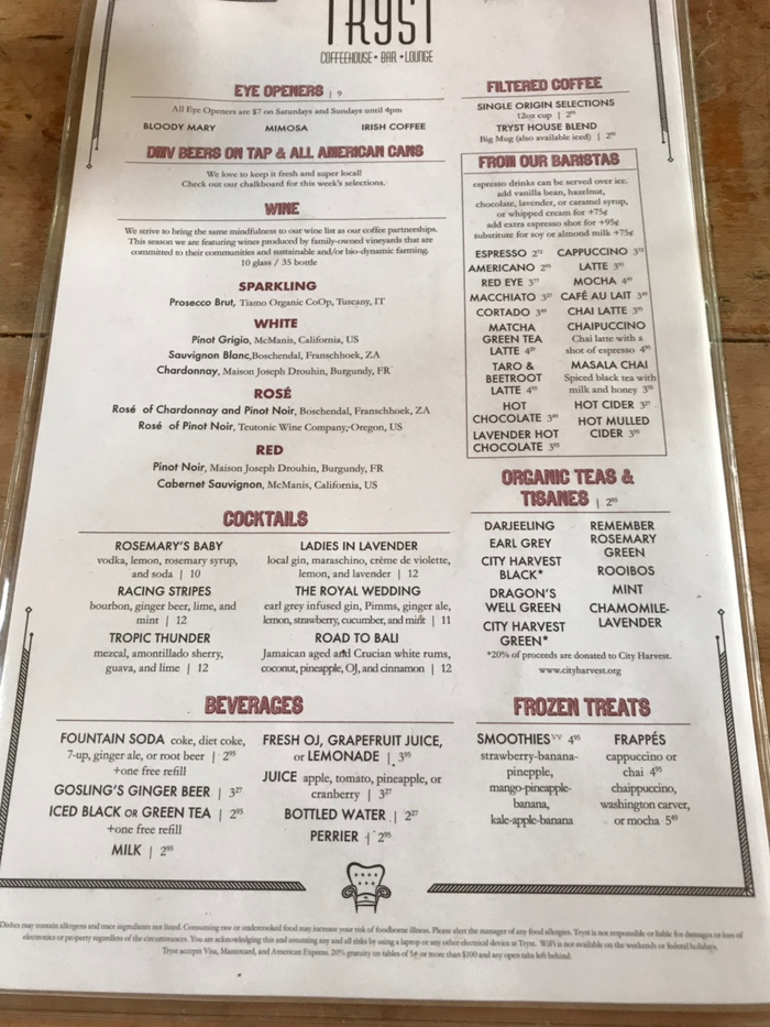 그렇게 돌아다니다가 목도 마르고 아픈 다리를 쉬어주려고 “Tryst” 라는 카페에 가게됬어요.