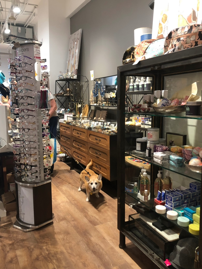 주인은 물건보는데, 웰시코기는 제게 관심이 있어 오고싶어했어요ㅎㅎㅎ꼬리를 살랑살랑~