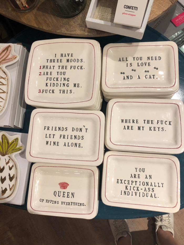문구가 담긴 그릇과 편지지와 트럼프 사진으로 만들어진 화장실 휴지ㅋㅋ
