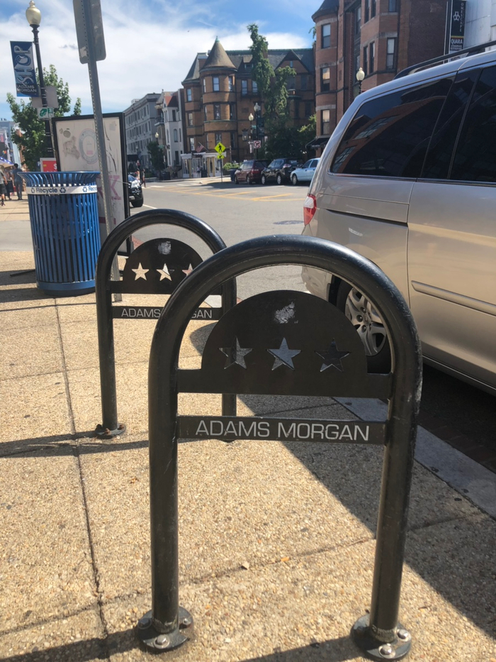전봇대에 보면 Adams Morgan 동네를 알리는 깃발도 달려있고, 자전거 Rack같이 보이는 것에도 동네 이름이 세겨져있었어요ㅎㅎ