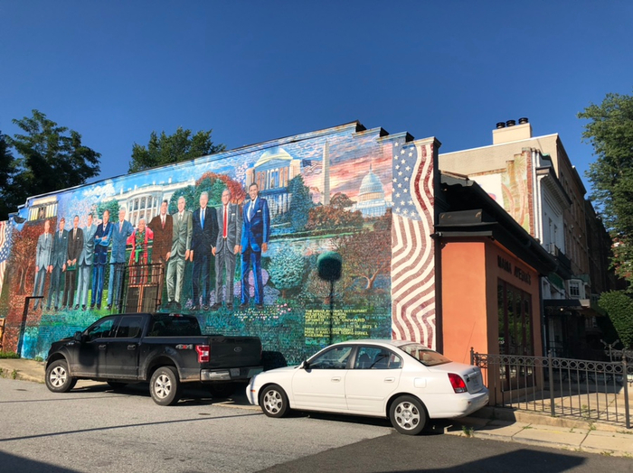 애담스모건으로 더 걷다보니, 백악관앞 미국대통령들이 서있는 모습이 그려진 어느 건물 벽화가 보였어요ㅎㅎ