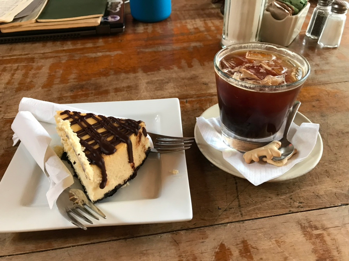 저는 개인적으로 너무 단 음식을 좋아하지 않아서 치즈케익위에 초코렛이 있어서 너무 달까봐 걱정했는데!! 왠걸~ 치즈케익이랑 같이 먹으니 진짜 맛있게 먹었던 기억이 나요! (돌아다녀서 당이 딸려서 맛있게 먹었던 것일수도...)