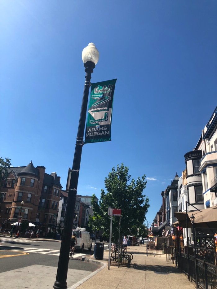 전봇대에 보면 Adams Morgan 동네를 알리는 깃발도 달려있고, 자전거 Rack같이 보이는 것에도 동네 이름이 세겨져있었어요ㅎㅎ