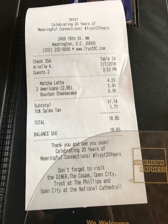 그렇게 돌아다니다가 목도 마르고 아픈 다리를 쉬어주려고 “Tryst” 라는 카페에 가게됬어요.